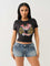 True Religion Women Black Placement Print Round Neck Top