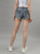 True Religion Women Blue Washed Mid-Rise Regular Fit Distressed Shorts