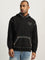 Men black self design hooded full sleeves sweatshirt