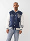 True Religion Men Black Embroidered Spread Collar Full Sleeves Jacket