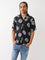Men black printed cuban collar short sleeves shirt