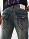 TRUE RELIGION Men Blue Vinny Big T Embroidered Relaxed Fit Jeans